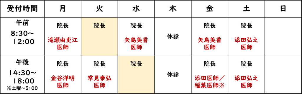 ※金曜日の午後は1・3・5週目のみ2診体制となります